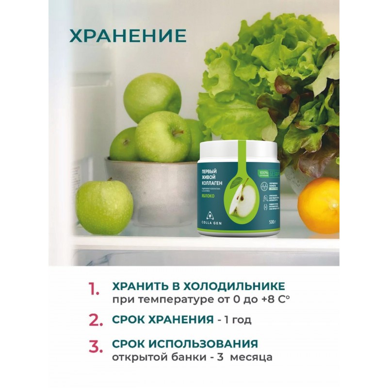 COLLA GEN Живой коллаген (гидролизат) со вкусом яблока, 500гр