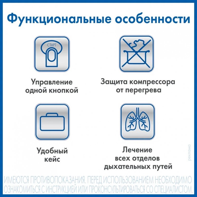 Широкий спектр разрешенных к использованию врачом лекарств, включая антибиотики, муколитики и гормональные препараты (важно соблюдать инструкции, разрешающие использование в ингаляторах для детей компрессорного типа).