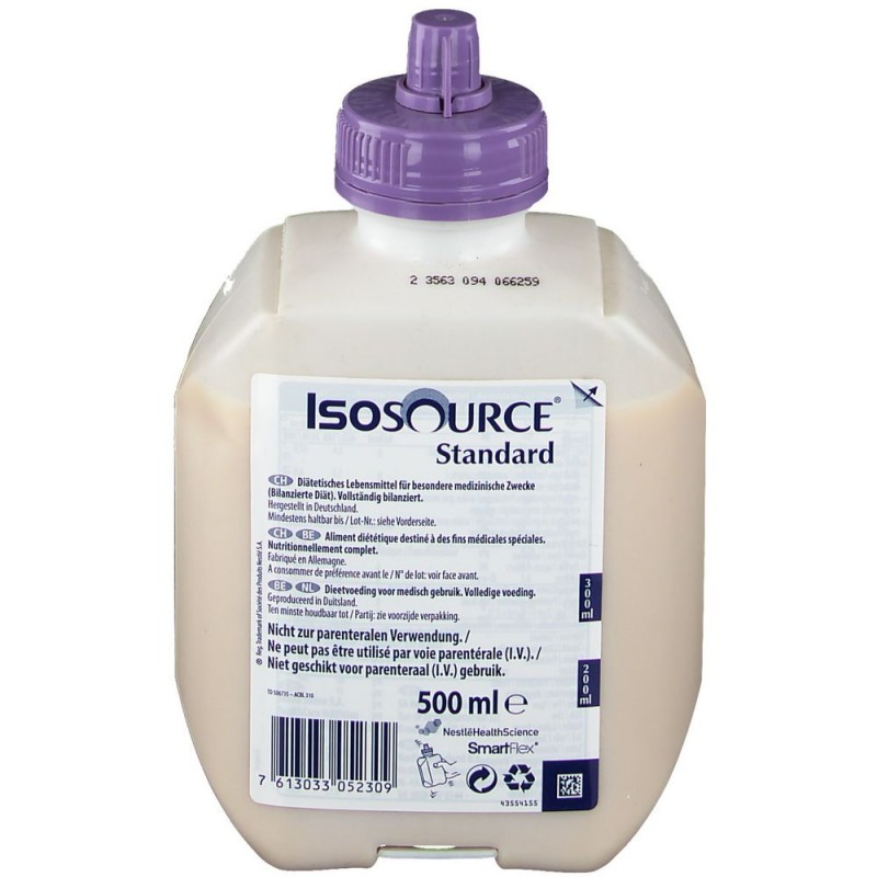 Смесь Isosource®Standard (Изосурс Стандарт) - стандартное изокалорийное зондовое питание для детей старше 3 лет и взрослых, для нутритивной поддержки пациентов со сниженным аппетитом, для профилактики и коррекции гипотрофии в пред- и послеоперационном периодах, при анемиях. Не содержит пищевых волокон и может применяться в ситуациях, требующих сниженной моторики кишки.