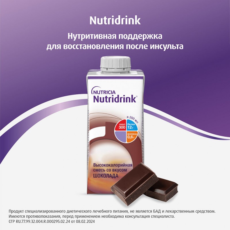 Nutricia Nutridrink (Нутридринк) - это готовая к употреблению смесь для диетического лечебного и профилактического питания пациентов в период лечения и реабилитации.