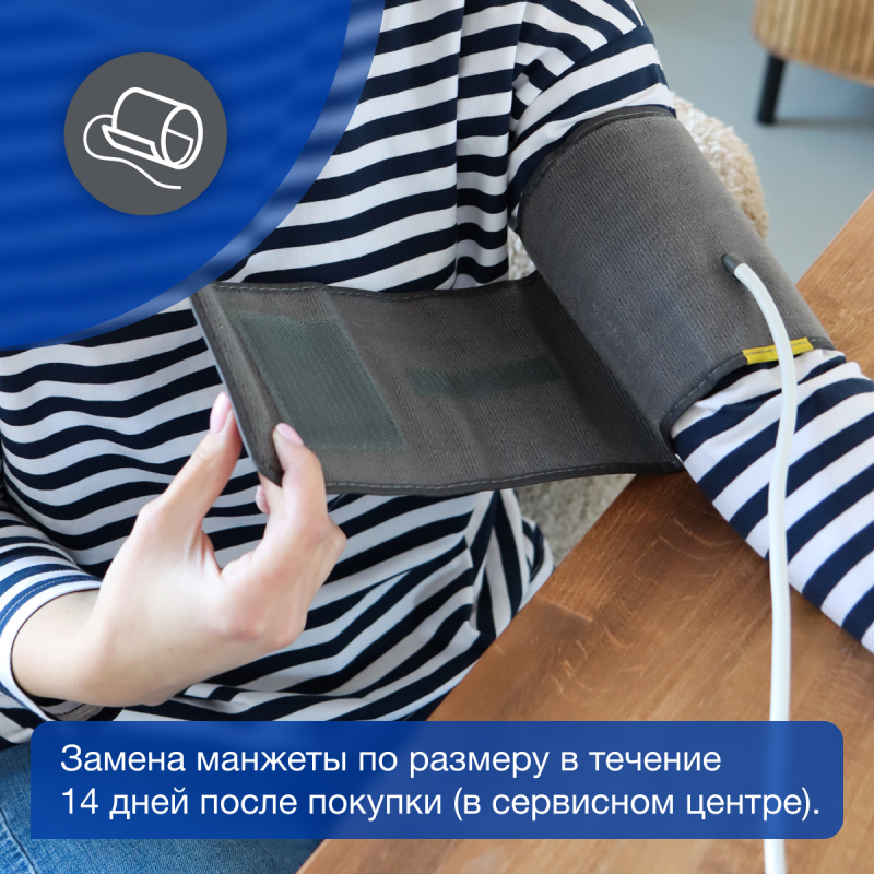 Технология Gentle+ делает процесс измерения еще более комфортным. Накачивание воздуха в манжету осуществляется с минимальным дискомфортом, не превышая необходимый уровень для точного измерения. Таким образом, вы можете быть уверены, что процедура измерения будет проходить мягко и комфортно для вас.
